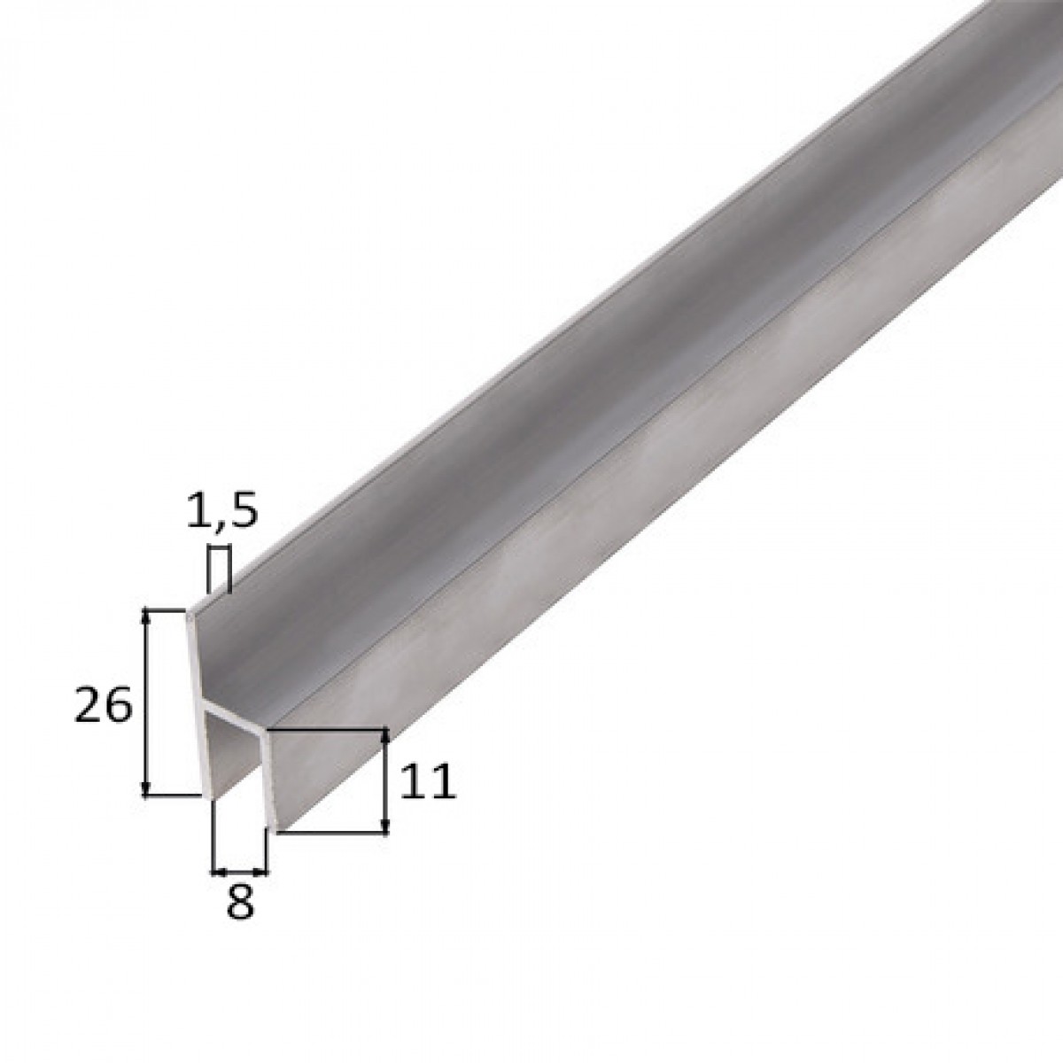 Hliníkový profil H, 26x11x1,5x8mm, 100cm, stříbrný elox