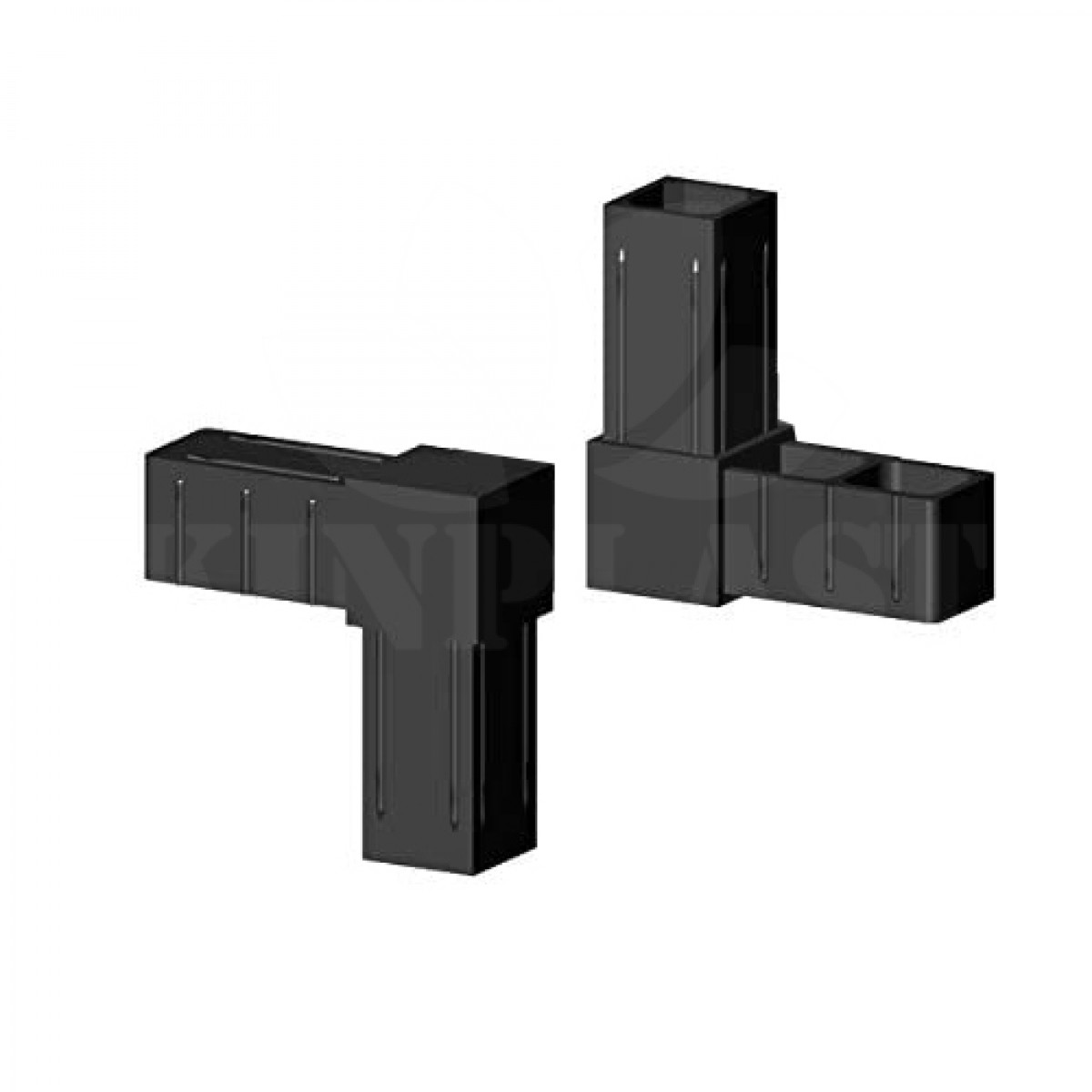 Spojka hliníkových profilů AH s pravoúhlým vývodem, 2D černá. Pomocí plastové spojky AH snadno spojíte hliníkové profily a rychle postavíte libovolné konstrukce bez potřeby dalších povrchových úpr..