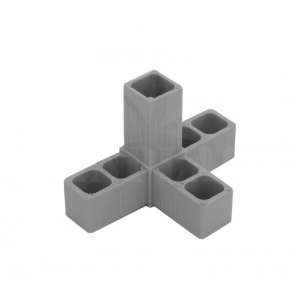 Pomocí plastové spojky AH snadno spojíte hliníkové profily a rychle postavíte libovolné konstrukce bez potřeby dalších povrchových úprav. Plastové spojky a spojky s kovovou výztužípro rozměrů 20x20x1,5mm, s dalším pravoúhlým vývodem slouží pro spojení čtyřhranných profilů 20x20x1,5mm z hliníku, např. na stavbu regálů, stolů atd. Vnitřní otvor profilu hliníku 17x17mm.
